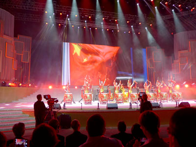 中國人民解放軍駐香港部隊文工團在晚會中的表演項目“軍民同心”,圖中正在表演回歸頌。