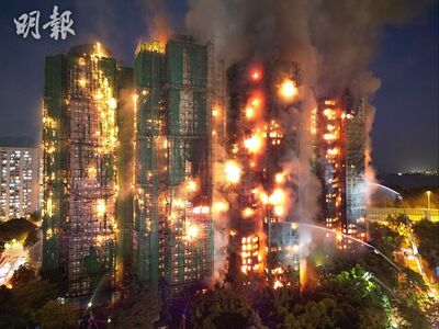 大埔宏福苑宏昌閣發生大火,火勢非常猛烈,大量濃煙捲上半空。