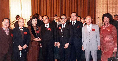 左二至五:胡漢輝、Liza、邱德根、鍾士元(香港行政局首席非官守議員)、羅保爵士(香港立法局首席非官守議員)