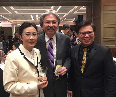 時任財政司司長曾俊華亦出席了王英偉伉儷的結婚晚宴,並與 Liza、王英偉合照留念,笑容燦爛。