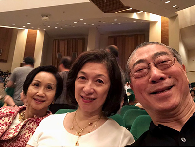 Liza 的好朋友梅太(左一)、莫醫生(右一)及莫太(右二)在香港文化中心音樂廳,欣賞 Liza 的音樂會,並自拍照片紀念。