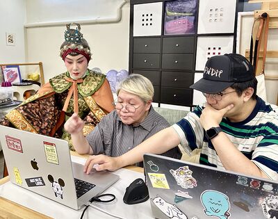 Liza、班主「施姐」彭美施和攝影師聚精會神的在研究造型照片。