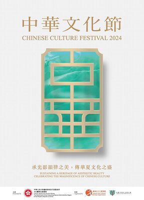 標誌設計詮釋華 - 古文同「花」,具「美」義。標誌以赤紅立柱為梗,湛綠斗拱為瓣,展現博大精深的中華文化。 「立柱」乃中國傳統木建築的承重構件,使建築巍然聳立,象徵中華文化之源遠流長,以一體承載,獨具綿延堅韌的生命力。 「斗拱」是中國傳統木建築的獨特結構,其多層複合的「鬥」與「拱」同時展現力量與美學的特質,既使屋簷向外延展,亦將重量凝於立柱,猶如極具包容性的中華文化,廣納百川,且具多元融和之美。 「中」居中置於「華」內,標誌左右對稱有序,象徵中國傳統的中庸平衡之道。 紅綠設色,既為中國常見的色彩搭配,蘊含中華文化鮮明獨特和生生不息的特質。 文化體育及旅遊局局長楊潤雄,GBS,JP的開幕獻詞香港植根深厚的中華文化,並融入多元的世界文化,形成中西文化薈萃,是文化交流的重要樞紐,更是促進中華文化在國際間影響力的平台。 在國家的堅定支持下,香港正全面發展成為中外文化藝術交流中心,助力國家加強國際傳播力,講好中國故事。 為進一步在香港推動中華優秀傳統文化創造性轉化和創新性發展,康樂及文化事務署成立「弘揚中華文化辦公室」,透過策劃及舉辦多項文化和歷史活動,積極推廣中華文化。 「中華文化節」正是其中一個重要的品牌項目。 「中華文化節」匯聚古今文化精粹,節目繽紛多彩,除了「中國戲曲節」精選劇目和獲國家藝術基金肯定的本地優秀作品外,還邀請內地不同省市的優秀藝團來港演出,以及與 其他文藝組織合辦的精品演藝節目,讓觀眾體驗中華大地不同地方色彩的演藝風情。 觀眾亦可參與視覺藝術展、專題講座、藝人談、電影放映、大師班和啟導交流的延伸活動。 「中華文化節」透過多元和互動的展演項目,加深市民對中華文化的認識和認同,更成為向遊客展現中華文化新姿的重要窗口。 在此誠邀大家一同參與,欣賞「中華文化節」呈獻的文化藝術瑰寶,體會中華文化的深厚底蘊,為我們絢爛的文化傳統而自豪。