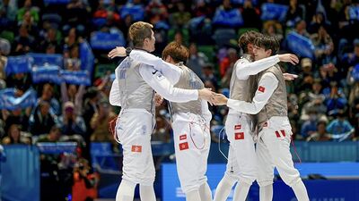 在男子花劍團隊賽,港隊最終以45:34大勝福建奪金。(全運會網) 歷經多日激烈比拼,第十五屆全國運動會(全運會)賽事已圓滿結束,多項賽事結果於11月20日有分曉。本屆出賽的港隊成員為歷屆最多,共計 602 名運動員角逐28個競賽項目的獎牌,獲9金2銀8銅,總獎牌已超越歷屆最多的16枚。其中,李思穎單屆勇奪3金,成為全運會最矚目選手。 在深圳出席全運會總體運行情況新聞發布會的政務司司長陳國基表示,今屆全運會香港歷來成績最好,展現香港推動體育政策的方向正確。啟德體育園的多個項目展現香港舉辦大型賽事的能力,相信能提升香港在國際體育版圖的地位。他亦指全運會是粵港澳三地體育協作的創新實踐,能夠推動大灣區的文化交流及經貿合作。
