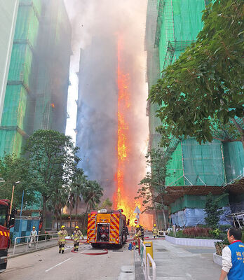 大埔宏福苑宏昌閣發生大火,火勢非常猛烈,大量濃煙捲上半空。