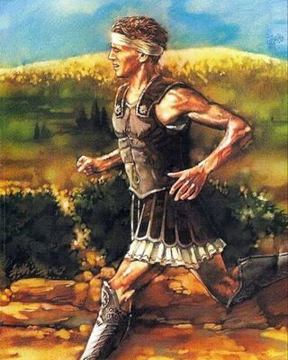 起源和歷史馬拉松運動的起源是一個融合了歷史戰役與英雄傳說的感人故事,主要源於西元前 490 年的「馬拉松戰役」(Battle of Marathon) 歷史背景:以少勝多的戰役在西元前 490 年,強大的波斯帝國軍隊入侵希臘,在雅典東北方約 40 公里的馬拉松平原登陸。雅典軍隊為了保衛家園,背水一戰。儘管兵力懸殊,雅典人最終奇蹟似地擊潰了波斯大軍,取得了決定性的勝利。為了讓焦急等待戰果的雅典市民盡快得知勝利的消息(並警告他們波斯艦隊可能轉向攻擊雅典城),希臘軍隊派出了一位著名的長跑健將傳令兵——菲迪皮德斯菲迪皮德斯 (Pheidippides)。 根據傳說,菲迪皮德斯為了搶時間,丟下了所有沉重的裝備,從馬拉松平原一路狂奔回雅典。這段路程長達約 40 公里(約 25 英里),沿途地形崎嶇。他全程沒有停歇,拼盡了全力。當菲迪皮德斯終於抵達雅典時,他已精疲力竭。他衝向雅典的長官們,用盡最後一口氣高喊: 「歡樂吧,我們勝利了!」(希臘語:Nenikēkamen!)。喊完這句話後,他便因體力透支、心臟衰竭而倒地犧牲。