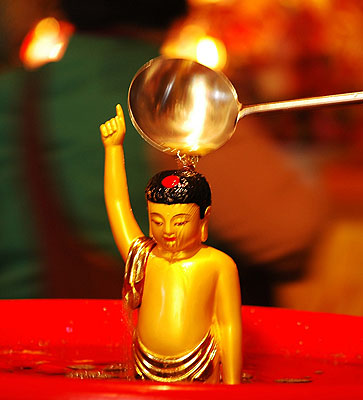 佛教無疑在華人社會間佔有一個重要位置,而佛誕則是佛教當中的一個重要節日,有如天主教和基督教的聖誕節。然而九七之前,在港英政府的管治之下,佛誕一直沒有受到重視,不被列為公眾假期,虔誠的佛教徒因為工作關係,大多難以參加浴佛儀式。香港佛教聯合會創會會長覺光長老與一眾佛教徒努力爭取,始終徒勞無功,佛誕始終未能如聖誕節般,被列為公眾假期。至回歸後第二年,在覺光長老鍥而不捨的堅持下( 詳情請參考本話題內「覺光長老」一節) ,佛誕終獲特區政府列為公眾假期,讓一眾信徒能在當天潛心參拜,也讓普羅市民有機會進一步認識佛學。 佛教義理博大精深,短短的篇幅當然難以深入探討,希望籍粗略的佛家淺談,與各位共參禪理,潛心向善。讓我們先從佛誕說起。 2539 年前的4 月8 日,印度迦毘羅衛國的王后摩耶夫人,在藍毗尼花園的無樹下,生下了悉達多太子,也就是後來出家成道的佛陀。太子誕生後,一手指地,說道:「天上天下,唯我獨尊」,意思是說:「我乃是宇宙最尊貴的覺者,我將廣度一切沉淪生死的眾生。」,隨即有兩股水從天瀉下,沐浴在王子的身上。後來,佛教徒每年為慶祝佛陀誕辰就沿用此例舉行浴佛儀式。 浴佛的意義:淨化個人的身口意,我們手持淨水向悉達多太子象沐浴時,內心應當誠懇祝禱,願袪除貪欲、瞋恨、愚痴的污垢,讓自己身行、語言、心意都能保持潔淨,希望社會清淨安寧,沒有暴力、詐欺、邪惡等事件,環境能夠優美清淨,並且藉著浴佛的功德,淨化自己的煩惱塵垢,美化我們的社會國土,轉五濁惡世為清淨的淨土,導邪曲人心為善良菩提,這就是浴佛的真正意義。 如何浴佛?《浴佛功德經》中提到